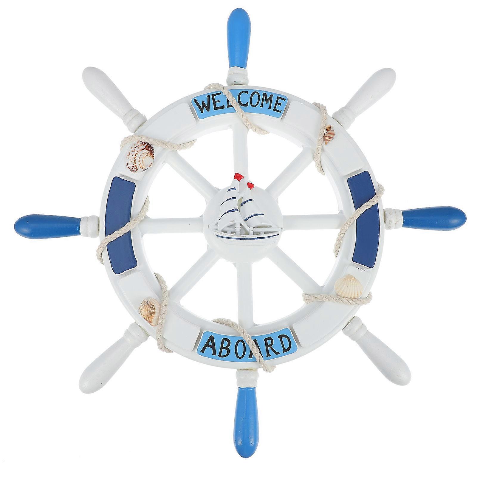 Wooden Rudder Pendant Wall Decor, Blue and White Nautical Ship Wheel Ornament for Home, Bar, Hotel, and