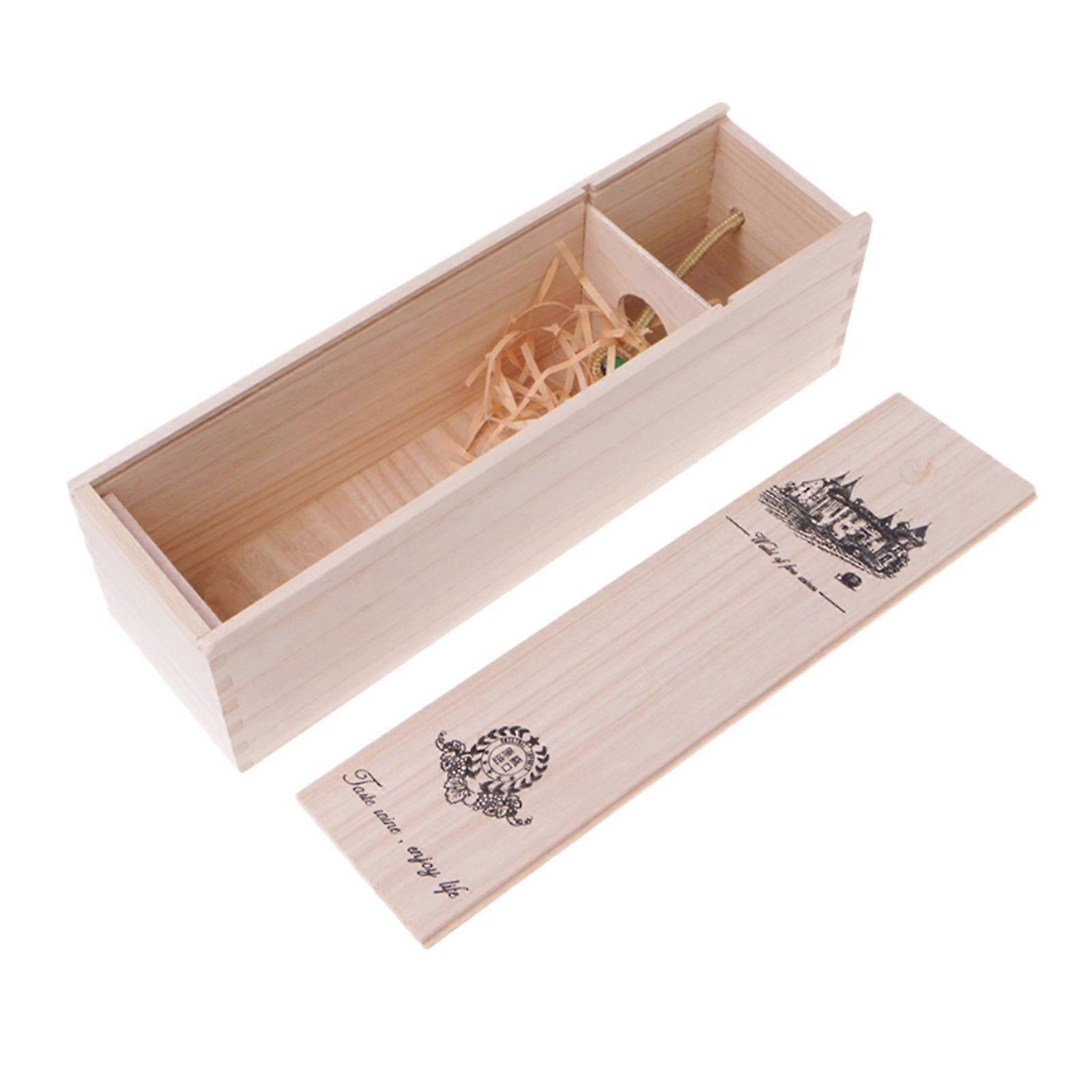 Wooden Wine Box Packaging Box w/ Handle Sliding Lid Case for Birthday Party