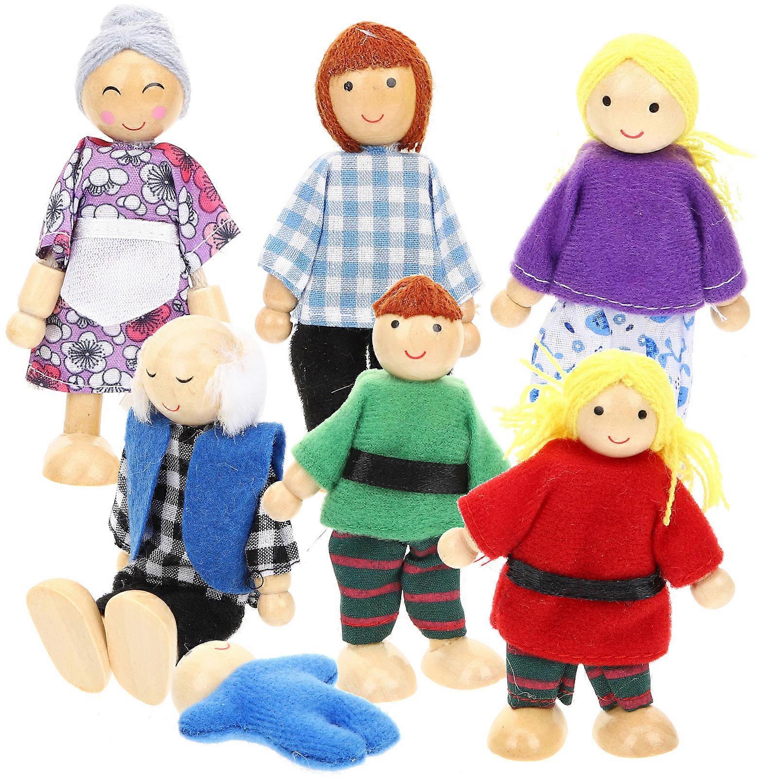 Wooden Doll Family Figures Playing House Dolls Role Play 7Pcs Set