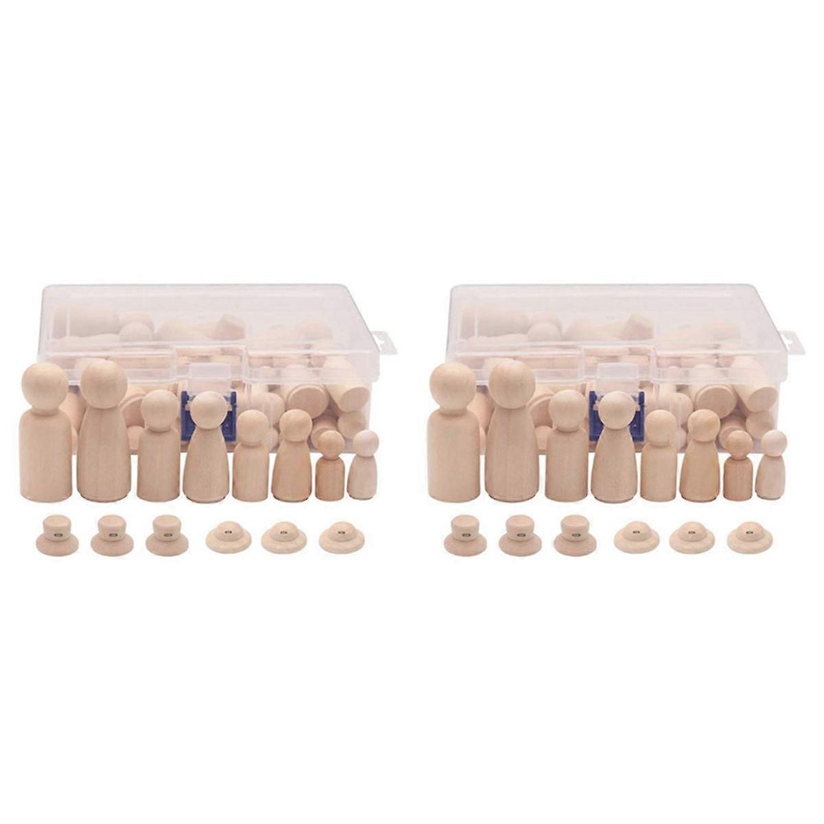 Wooden Dolls 56 Pcs Unfinished Decorative DIY Wooden People with Hats