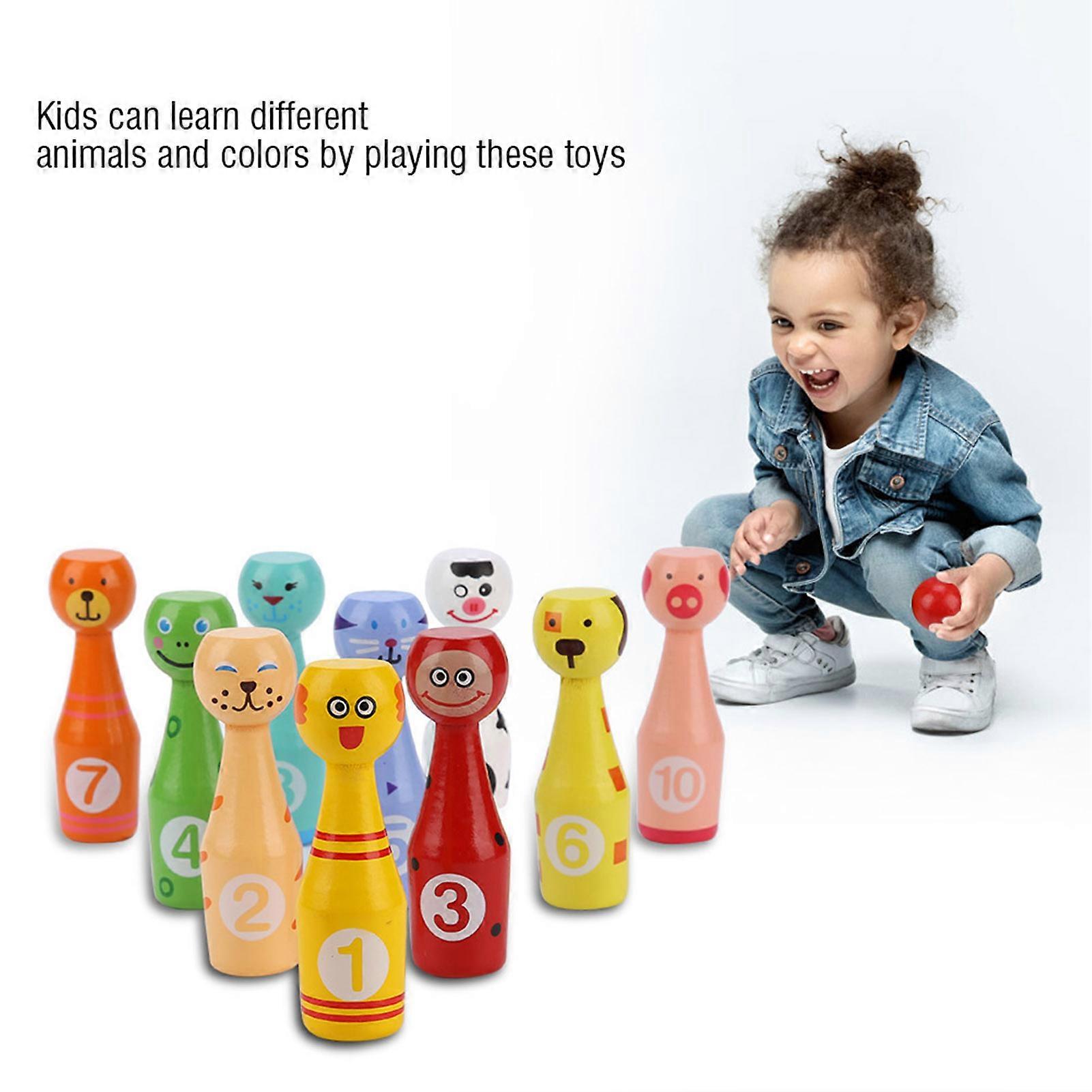 Wooden Animal Bowling Toy Set, 10 Bottles 12x2.9cm & 3 Balls 4cm