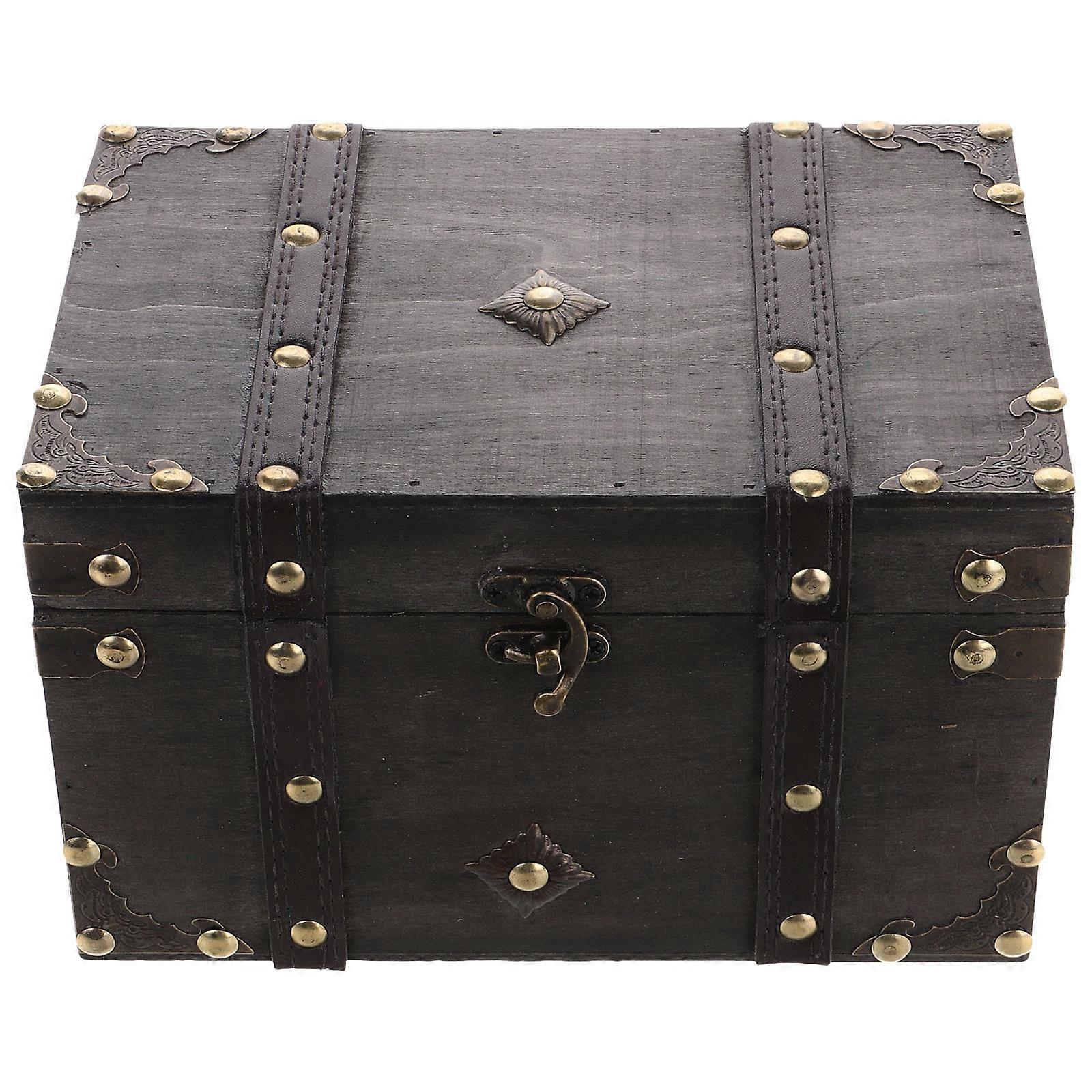 Elevate your home decor with this vintage wooden chest for storing keepsakes and memories. The wooden treasure chest features a spacious interior, providing ample room for all your storage needs. Its antique design and sturdy construction make it a durable and stylish choice. The stone packaging box adds a unique touch, making it a standout piece in any room. Features -Color:Dark Grey -Material:Wood -Size:21.70X14.50X13.50cm/8.53X5.70X5.31in -This spacious storage box is designed to hold a wide range of items, making it easier for you to keep your home neat and organized. -Vintage wooden storage trunk with lock wooden chest box decorative treasure chest for jewelry keepsakes coin collection dark grey. -Featuring a sturdy lock, this box ensures that your valuable items are kept safe and secure, giving you peace of mind. -The antique-inspired design with stone detailing adds a sophisticated touch to your home decor, making it a stylish addition to any room. -The elegant gray latch design complements various home decor styles, from minimalist to classic, seamlessly fitting into your interior design. Package list: 1 x Wooden Chest Box