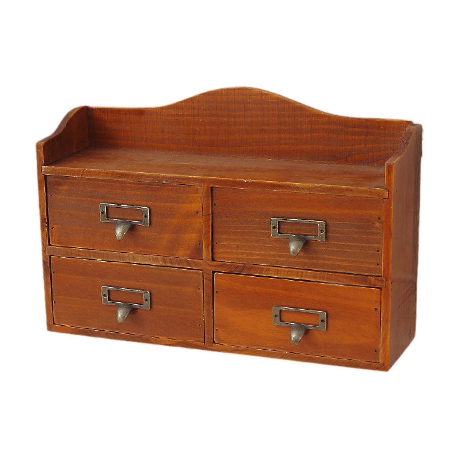 Wooden Storage Box Desk Organizer with 4 Drawers Makeup Shelf Rack Vintage Style