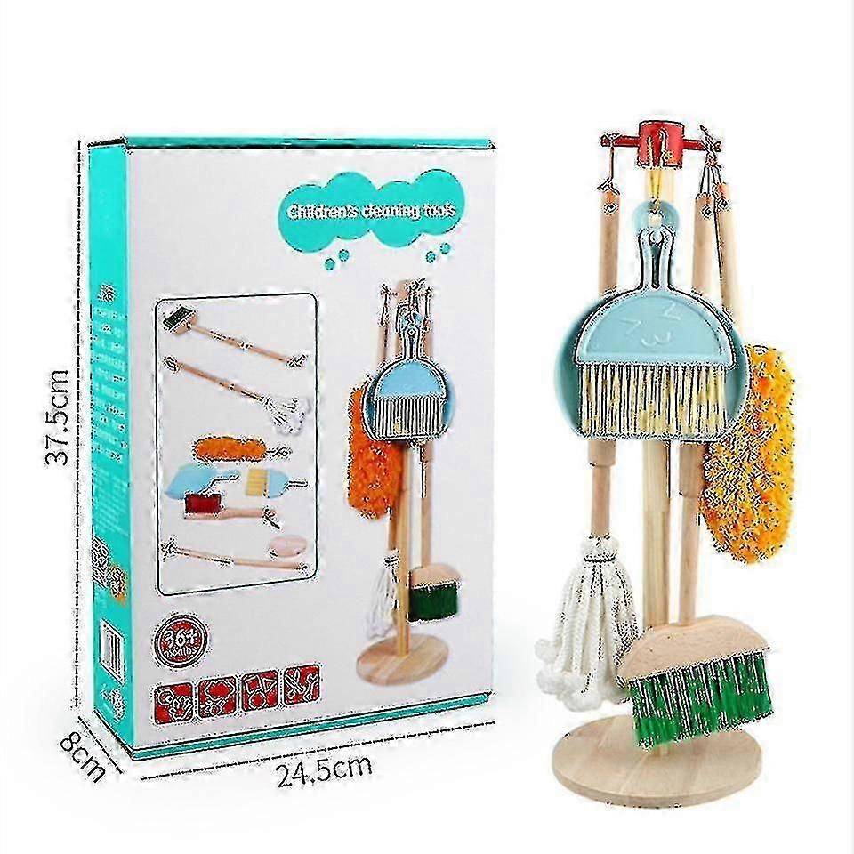 Wooden Detachable Toy Cleaning Set, Kids Cleaning Toys 6 Piece - Hanging Stand Play Kitchen Cleaning Tools For Kid Gift A