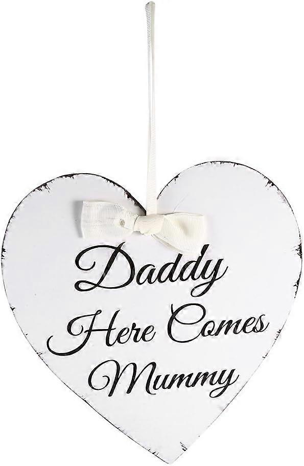 Wooden Hanging Sign, Vintage Love Heart, "Daddy Here Comes Mummy" Wedding Party Plaque Decoration Gift