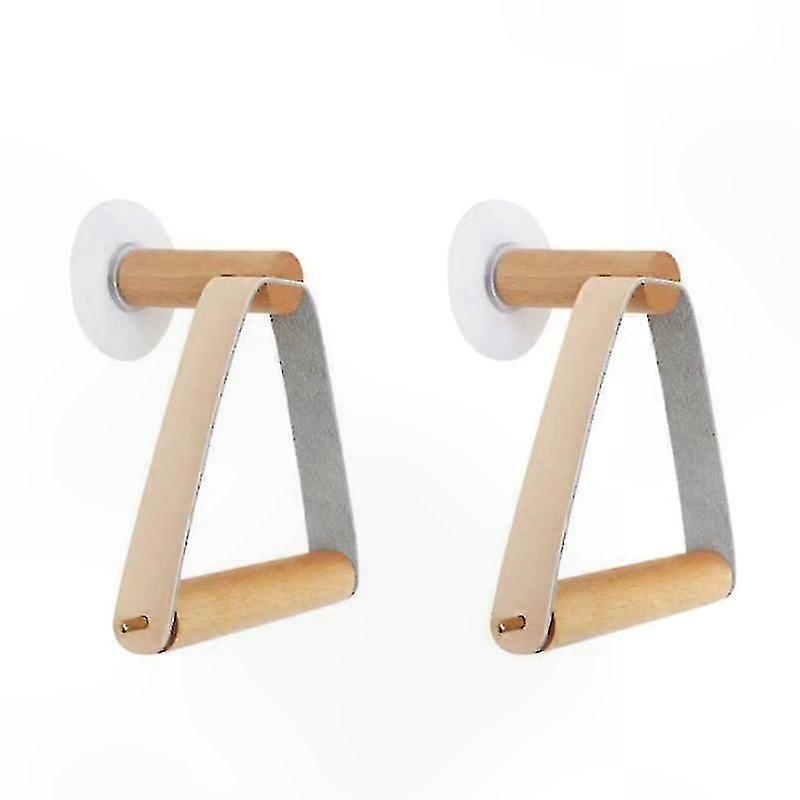 Wooden Wall-Mounted Toilet Paper Holder Set with Leather Accents, 2-Piece Bathroom Accessory Collection