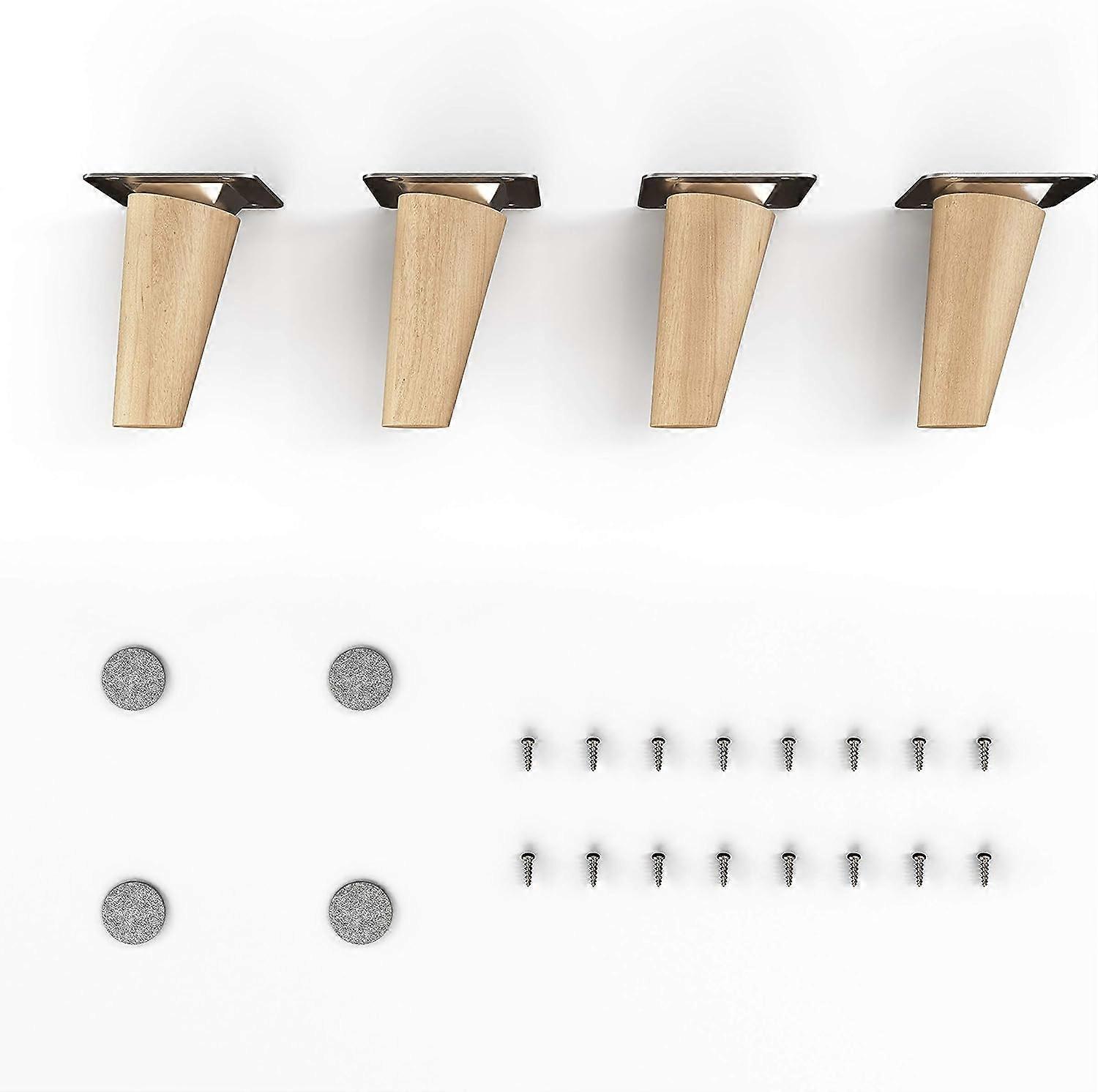Wooden Furniture Legs - Oil decoration - Height: 8cm - Round, Tapered (Beveled Design) - Material: Solid Wood (Rubberwood) - For chairs, tables, cabin