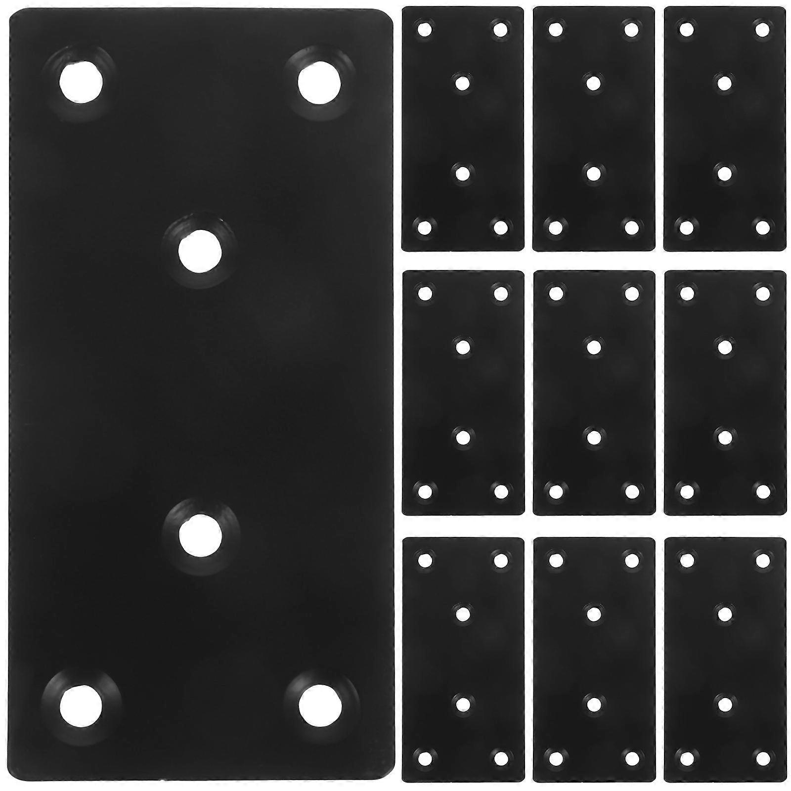 Flat Corner Brace Plates For Wood Furniture Support 10.00X5.00X0.20CM Black Stainless Steel Fasteners 1 Set