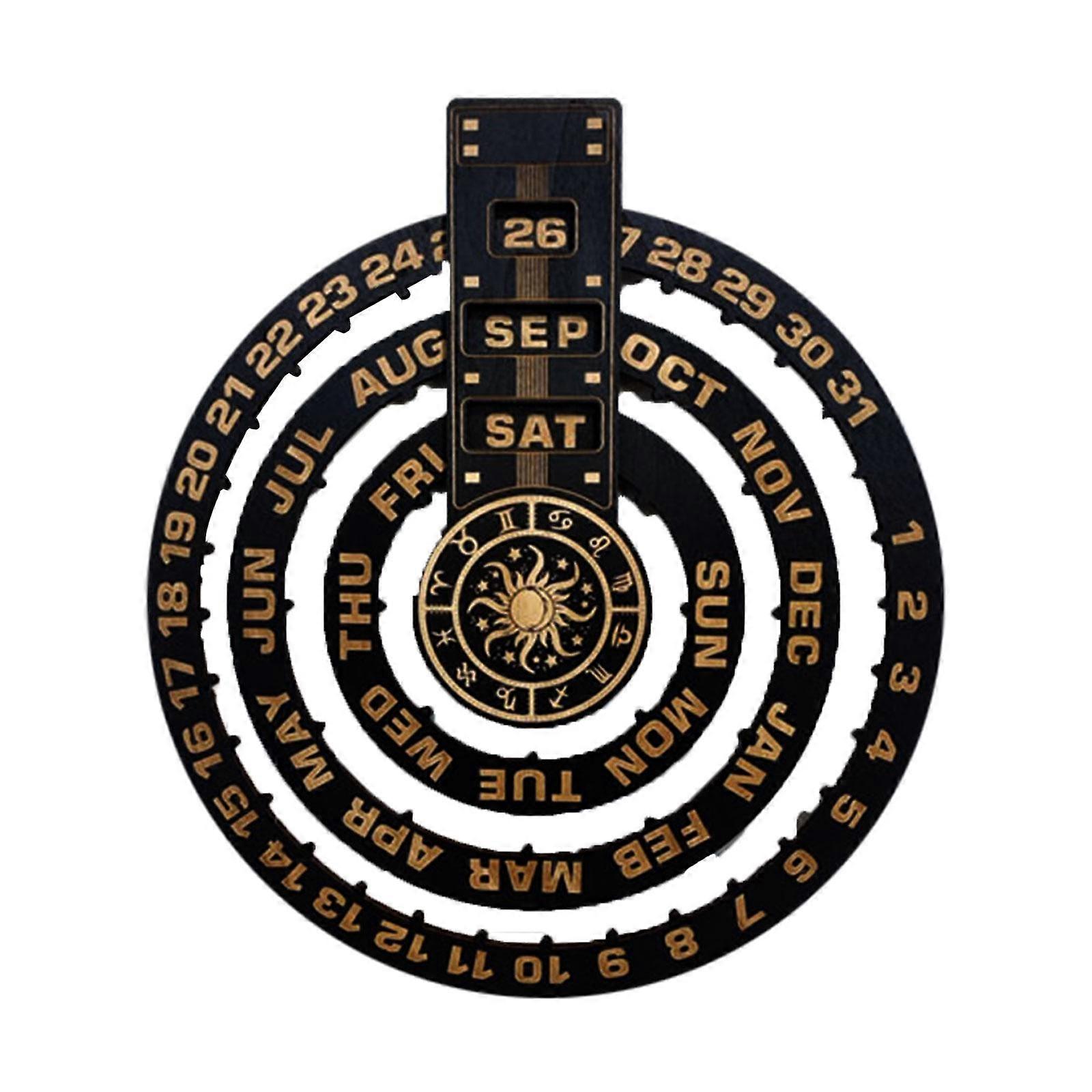 Description: MATERIAL: Made of high quality wooden material, recyclable and durable for long time use. HOME DECORATION: Rotatable perpetual calendar pendant is an ideal choice for your home decor, it can be easily spun to reflect the date. EASY TO USE: The calendar is either hung on a wall or placed on a table, desk, countertop or bookcase. Perfect for decorating your home year after year. APPLICATION: Suitable for home, office, library, bedroom, living room, dining room, kitchen, cafe, and restaurant decor accessories. GIFT: Perfect gift for friends, family and colleagues new Year, Birthday, Valentine's Day, Housewarming, etc. Specification: Material: Wood Size Chart: 33cmx30cmx1.5cm/12.99inchx11.81inchx0.59inch   Package Includes: 1 Pendulum Board