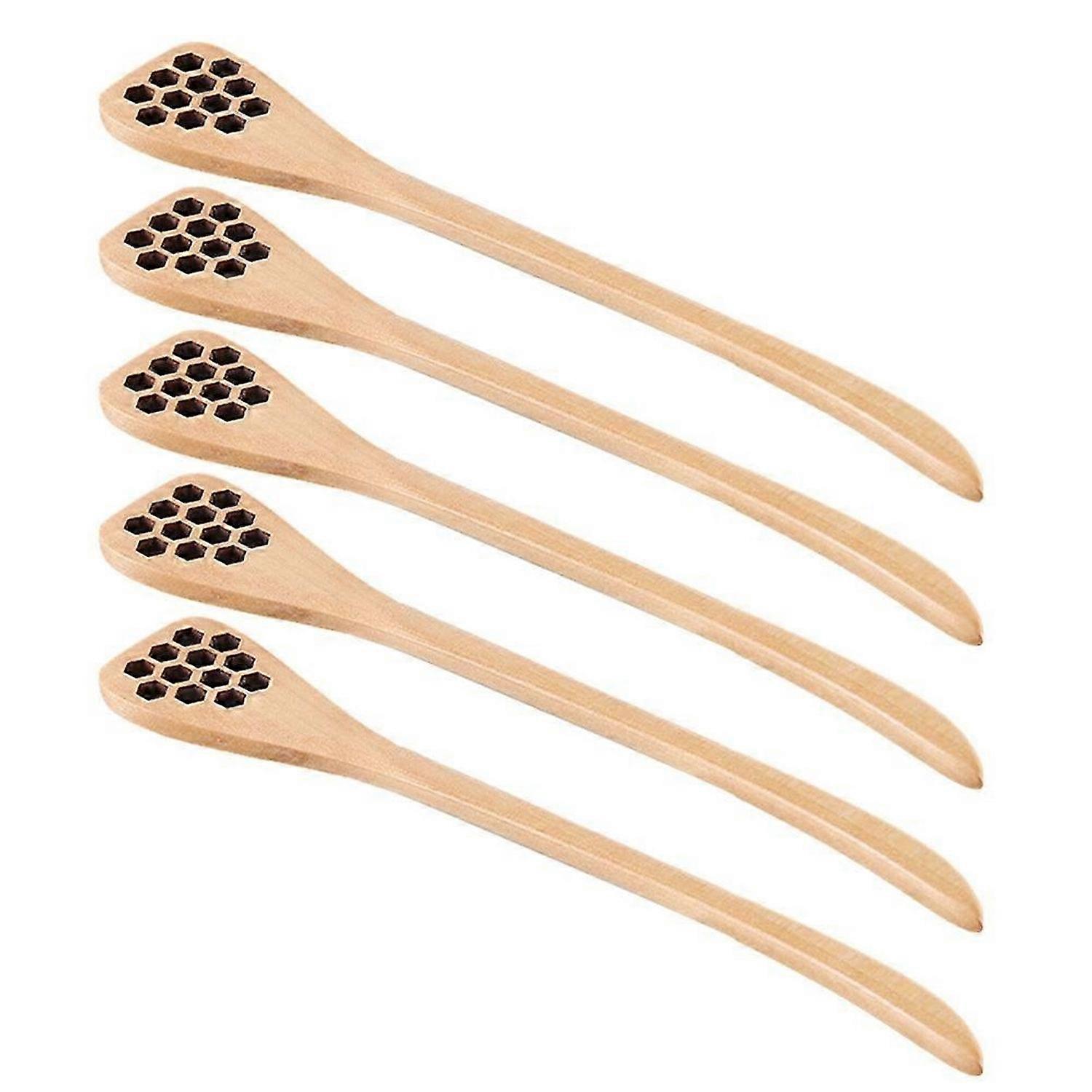 Made of natural wood, and will not have any harmful effects on foods such as honey. Long handle, easy to use, it is convenient to take honey with this honey spoon. Great for party gifts, gifts, weddings, homes, improve the quality of life. The wooden honey spoon looks natural, simple and elegant, and is a beautiful embellishment for any kitchen or dining table. It can also be used to dip molasses, maple syrup, fruit syrup, and can also be used to stir lemon tea, iced tea, etc. The grooves on these wooden spoons help you easily collect and dispense honey from the jar. Hollow spoon, environmentally friendly wood, well-ground, smooth and healthy to use.<br><br>Colour:As Shown Material:Wooden Type: D: Natural color pointed tail style<br><br>Package Contents: 5x stirring spoon<br><br>Only the above package content, other products are not included. Note: Light reflection and different displays may cause the color of the item in the picture a little different from the real thing. The measurement allowed error is +/- 1-3cm.