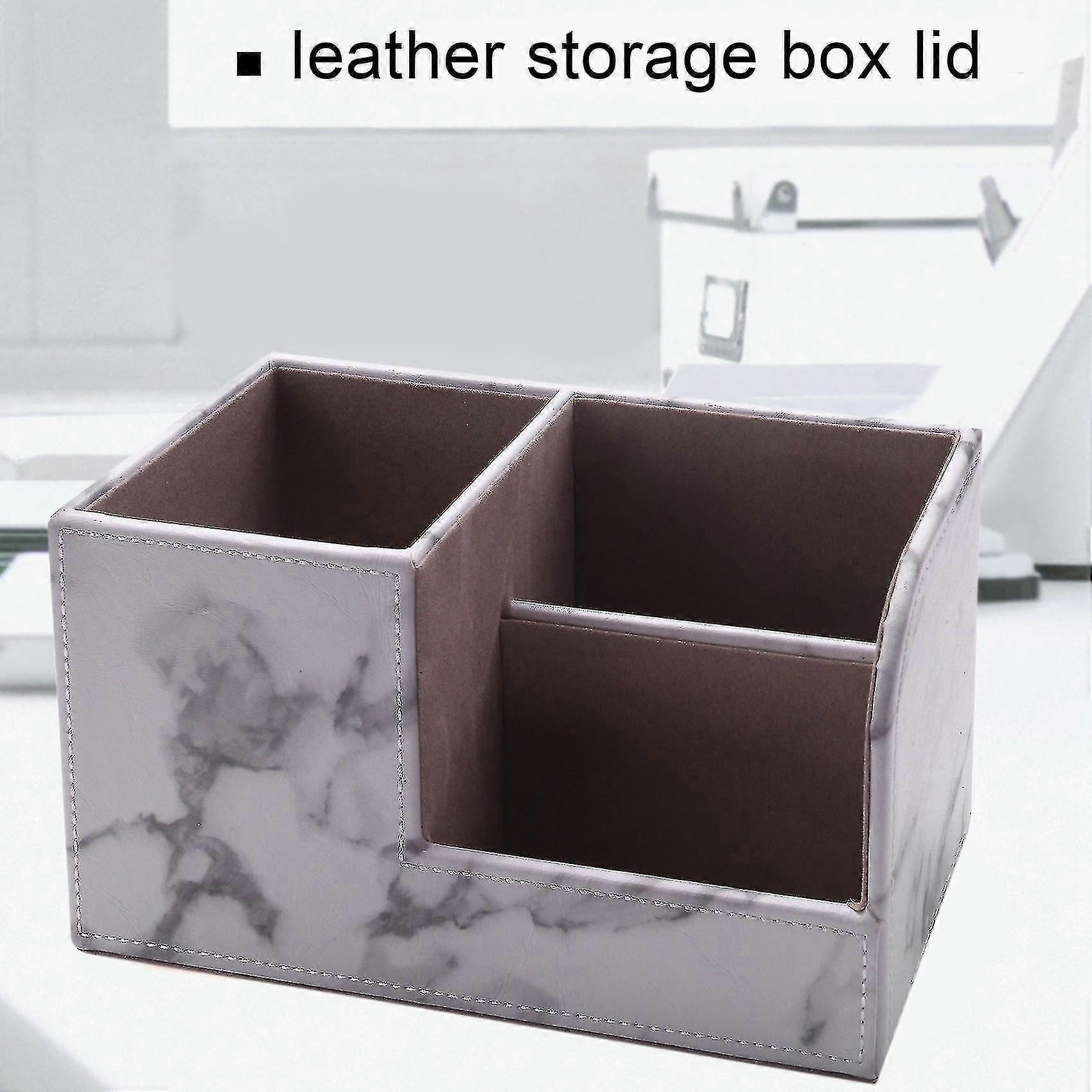 Leather Multi-function Desk Stationery Storage Box with Wooden Structure