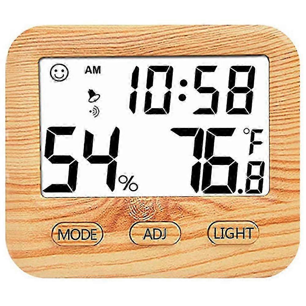 Wooden Hygrometer Thermometer with Clock for Home & Office
