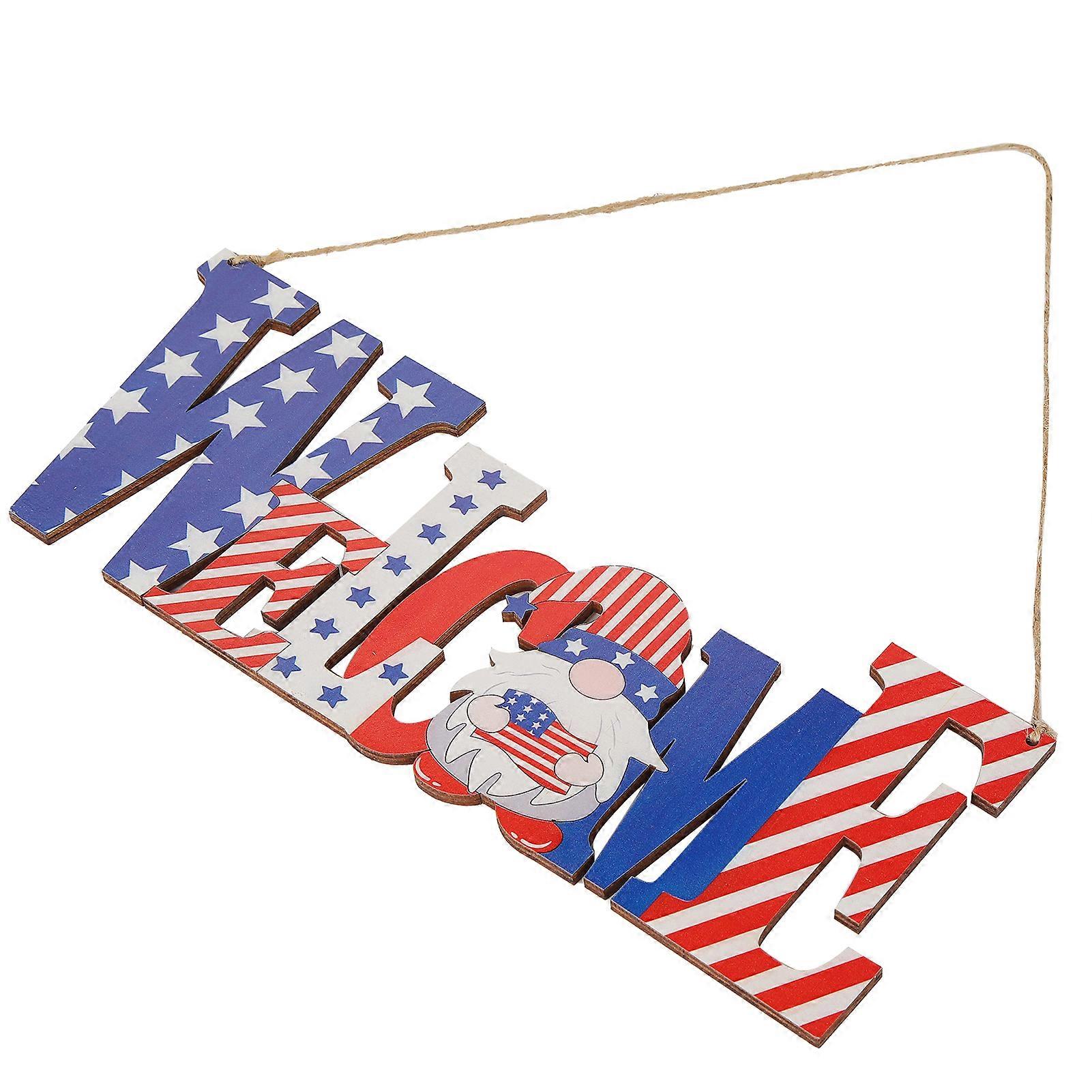 Wooden Independence Day Gnome Door Sign Basswood Wall Decor