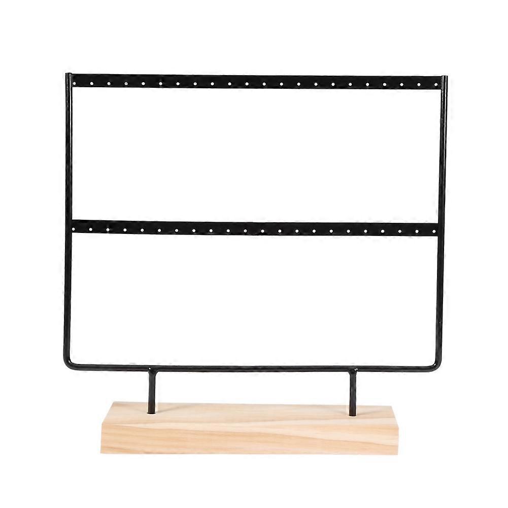 Wooden Dish Stainless Steel Earrings Jewelry Organizer Display Holder Stand (Black)