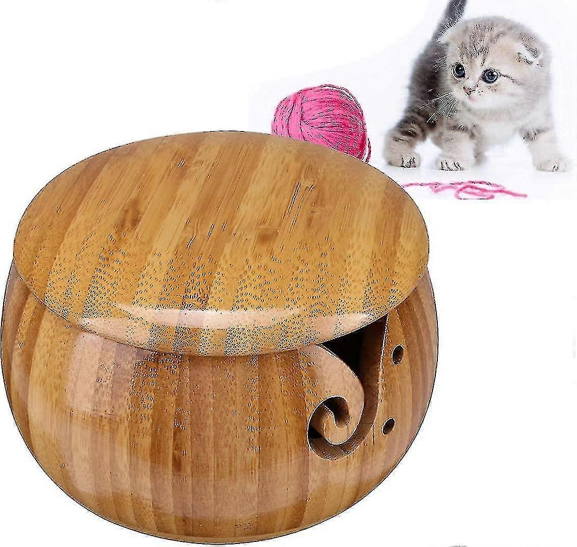 Wooden Yarn Storage Bowl, Handmade Wooden Weaving Thread Bowl With Removable Lid