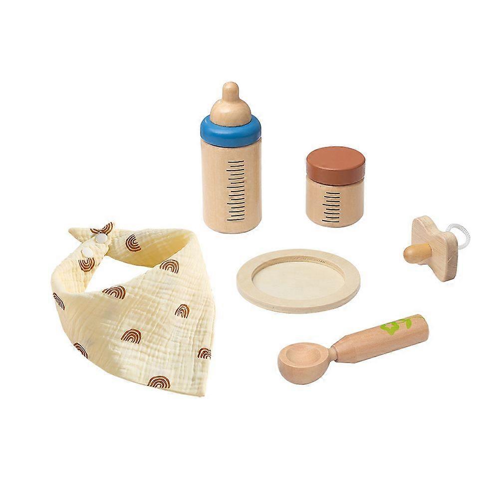 1 Set of Wooden Feeding Set Pretend Play Feeding Set Educational Wooden Bottle Feeding Set