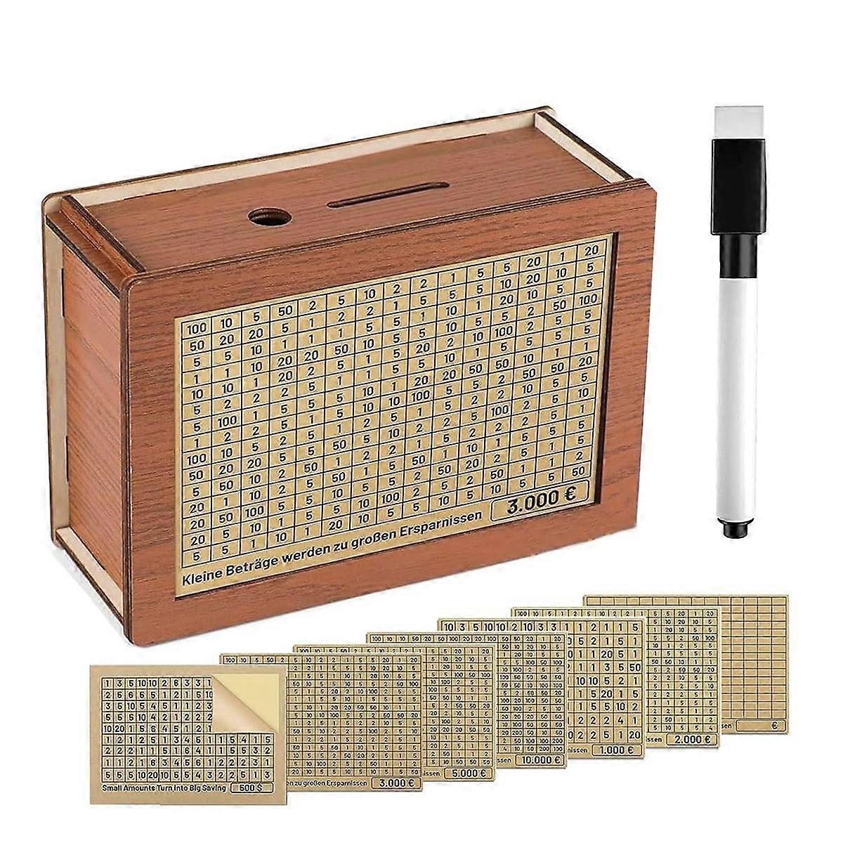 Wooden Money Box, Wooden Money Box with Counter for Ticking, Piggy Bank with Marker, Money Box, Wooden Piggy Bank Helps