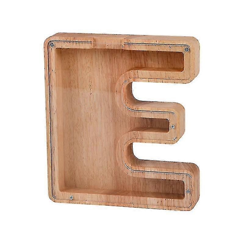Wooden Bank, Large Wood Bank, Creative Alphabet Storage Tank Personalized Letters Coin Bank Customized Wood Toy Letter Decor Kids Money Bank (e)