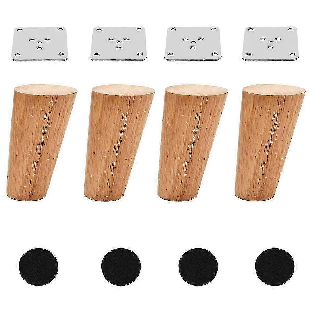 Wood 4 Inch Tapered Furniture Legs Set of 4 Round Solid Unfinished Mid Century Couch Feet Replacement Legs for Sofa