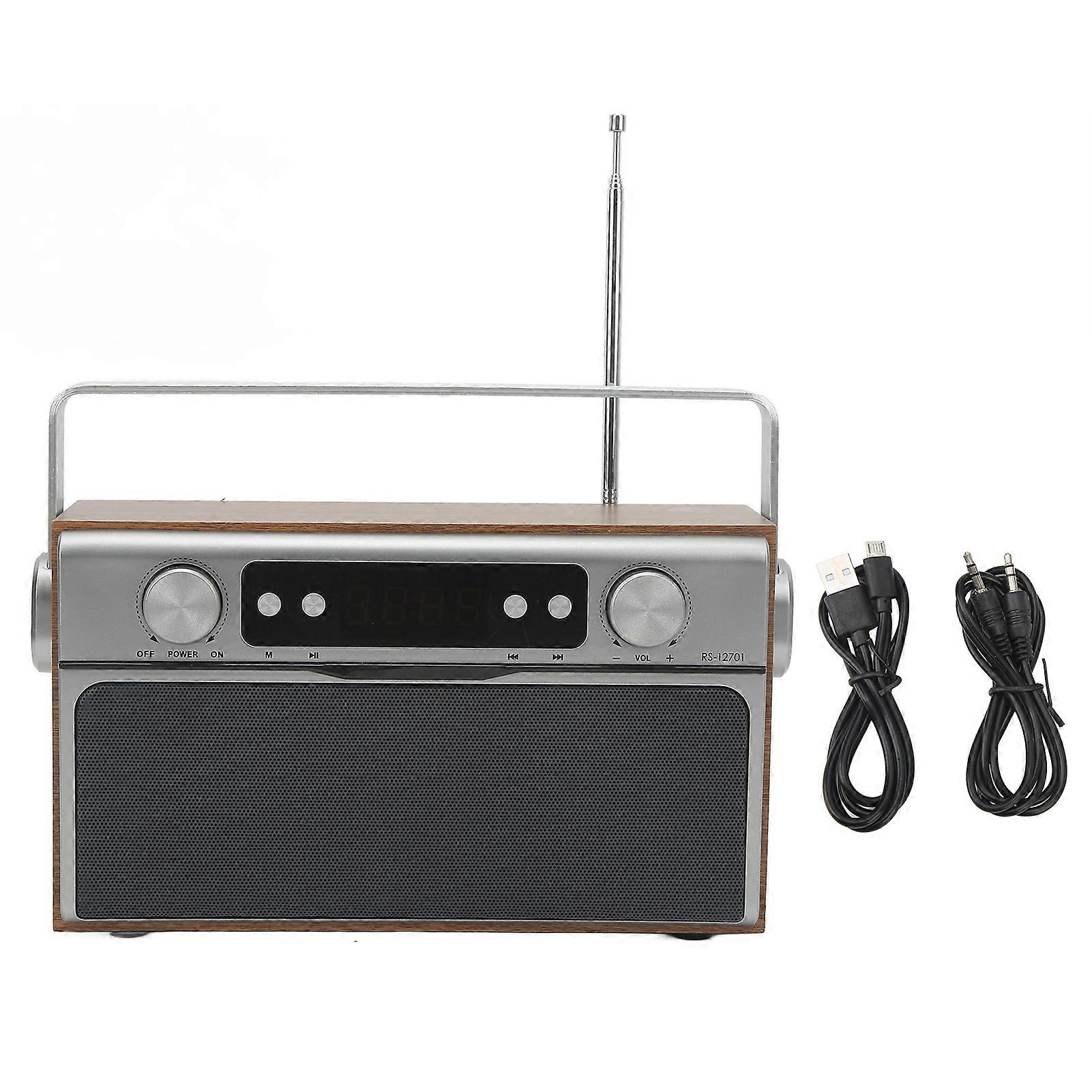 Feature: 1. DOUBLE SPEAKERS: Wooden bluetooth speaker alarm clock radio front two high powered speakers, surround sound, treble more transparent, low frequency more shocking. 2. CONNECTING DEVICES: Alarm clock FM radio can be connected to cell phones, tablets, TV, laptops, etc., with Bluetooth electronic devices to play music. 3. THREE MODES OF PLAYBACK: Bluetooth alarm clock speaker supports U disk, small memory card, AUX sound cable three playback modes, so you can enjoy music at any time without restrictions. 4. BUILT IN FM RADIO MODULE: FM radio built in FM radio module, listen to your favorite radio station at leisure. Built in 2600 mAh high capacity lithium battery, long life. 5. DIGITAL DISPLAY: Wooden bluetooth speaker is equipped with a digital display, clock function and alarm clock function, stylish and novel appearance, powerful. Specification: Item Type: Wooden Bluetooth Speaker Alarm Clock Radio Material: PVC, ABS, Synthetic Wood Sound Format: Support MP3 And FLAC Format Bluetooth Version: V5.0 Bluetooth Distance: 10m/32.8ft (Provided There Are No Excessive Obstacles) Output Power: RMS 20W Sound Channel: 2.0CH Signal To Noise Ratio: ≥85dB Frequency Response Range: 80Hz-20KHz Power Supply: DC 5V 1A Battery: Built In Lithium Battery, Capacity 2600mAh (Shipped With Built In Battery). Package List: 1 x Wooden Bluetooth Speaker Alarm Clock Radio1 x Sound Cable1 x USB Cable1 x Instruction Manual