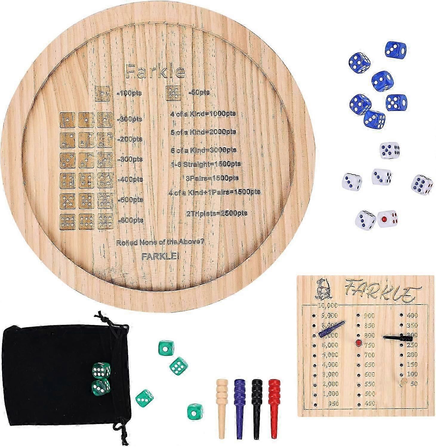 Wooden Farkle Dice Tray Set, Farkle Classic Dice Game with 12 Inch Tray 6 Pearl