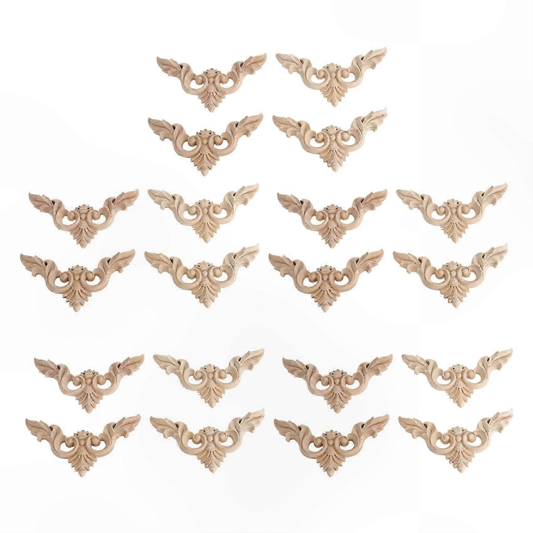 Unpainted Wood Corner Onlays, 8x8cm Decorative Appliques for Furniture and Home Decoration, 20 Pieces