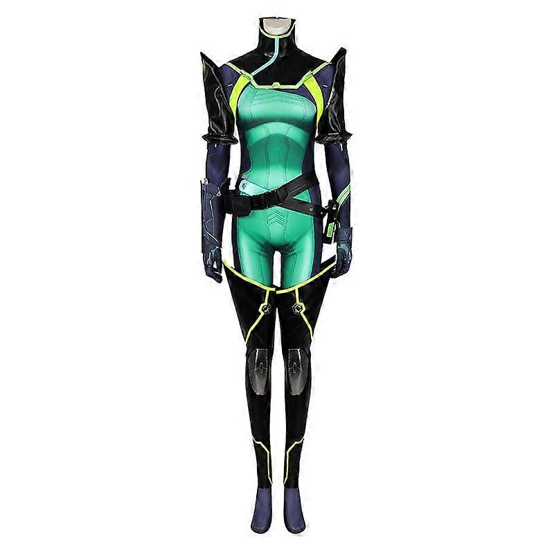 Futuristic Toxin Operative Cosplay Costume Green & Black Tactical Bodysuit with Armor Accessories Stealth Combat Design (XSXXXL)