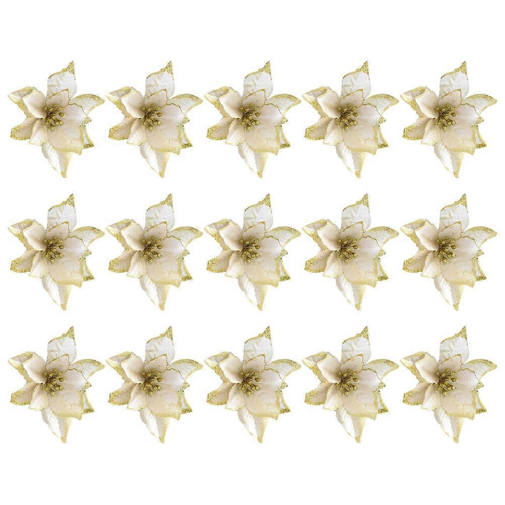 Lifelike Artificial Christmas Tree Flowers Gold Glitter Holiday Wedding Home Decoration 15pcs Set