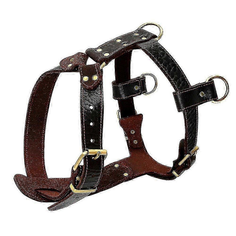 Genuine Leather Dog Harness Brown Walking Training Harnesses 23'-34.5' Adjustable Chest Large Dogs Pitbull Alaskan Malamute
