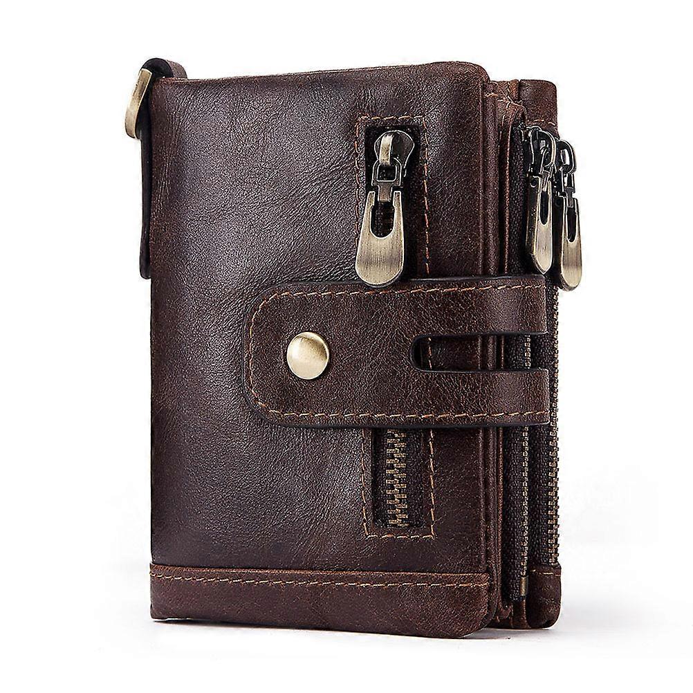 Genuine Leather Wallet Men Vintage Zipper Purse Coin Case Credit Card Holder Wallet