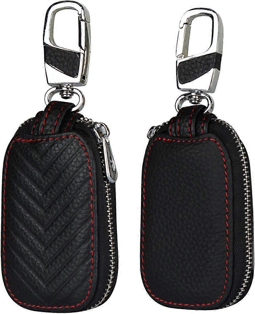 Genuine Leather Car key Chain bag Car Smart Key Chain Holder Case Cover Holder Pouch Remote Key Chains Fob Bag Keyring Wallet Zipper Case (Black) (1pc