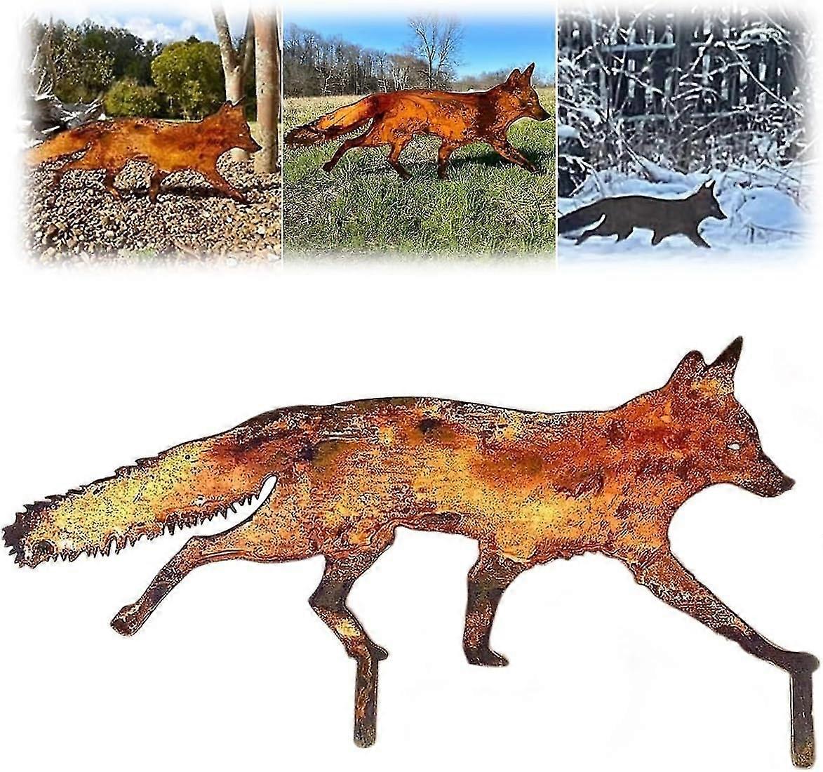 Sneaky Rustic Metal Fox Garden Decoration With Stakes, Fox Iron Art Plug-in Garden Ornament, Animal Hollow Decoration Creative Inserts