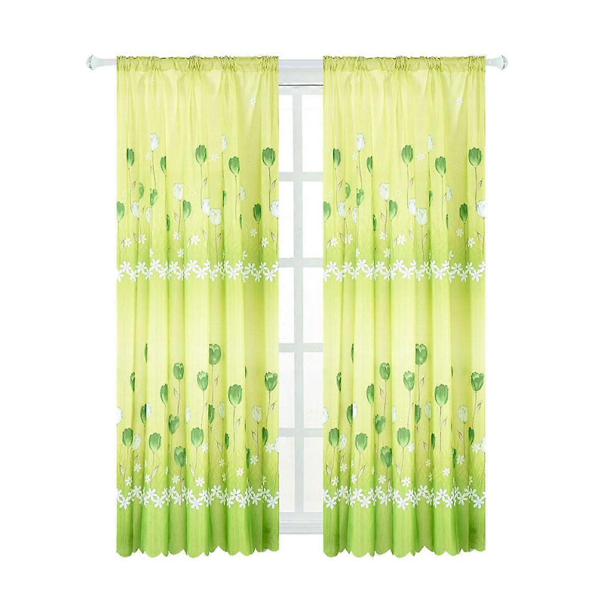 Southeast Asian Style Home Fashion Printed Tulip Short Curtain Breathable Window Curtain(Green)100 * 200cm