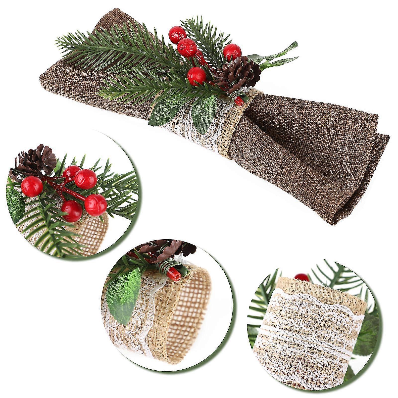 Christmas Berry Napkin Rings With Pine Cones And Red Berries - Set Of 8, 9x7cm, Plastic + Cloth + Foam