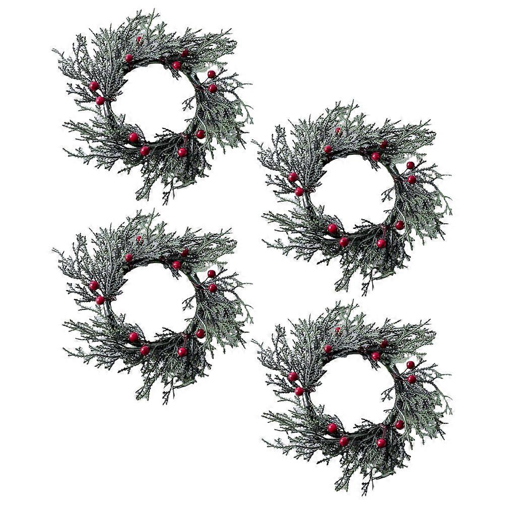 Pine Pillar Candle Ring Holiday Frosted Berry Garland Christmas Table Decor 7.9x7.9x1.6in 4Pcs