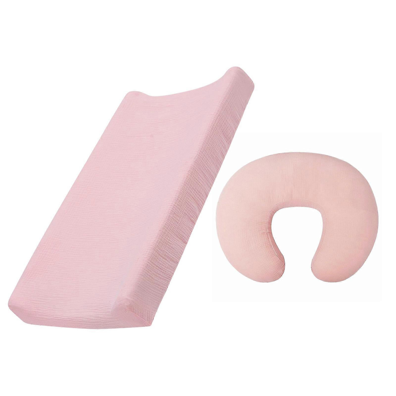 Breathable Bassinet Sheet with Pillow Cover, 2Pcs Fitted Sheet Diaper Changing Pad Sleeve with Nursing Pillowcase Set Pink
