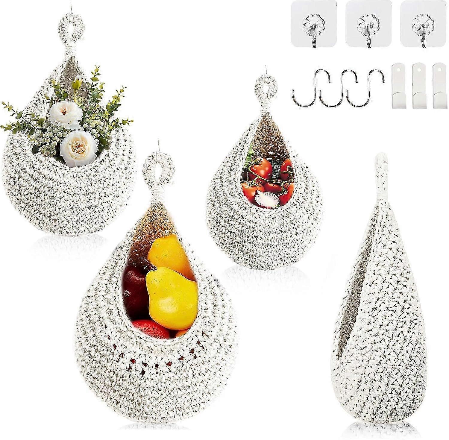 Handwoven Boho Wall Hanging Basket for Fruit Vegetable Hanging Baskets Storage Organizer Decorative Hanging Wall Basket 3Pcs Set with Hook (Cotton Ro