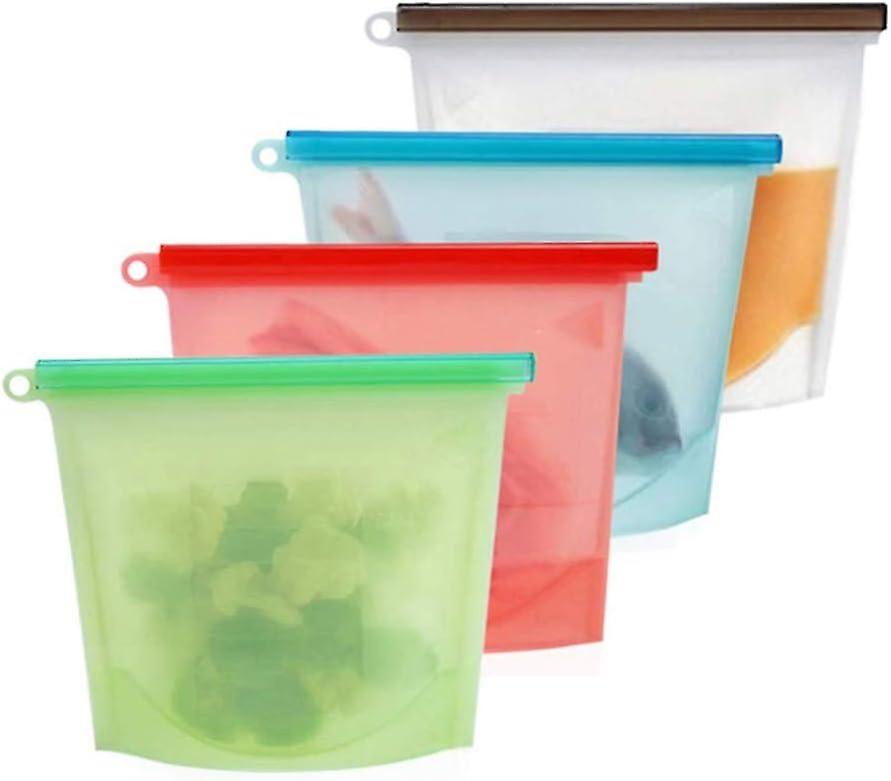 Silicone Set of 4 Reusable Storage Bag for Fruit Vegetable Preserving and Freezing Meat Soup, Airtig