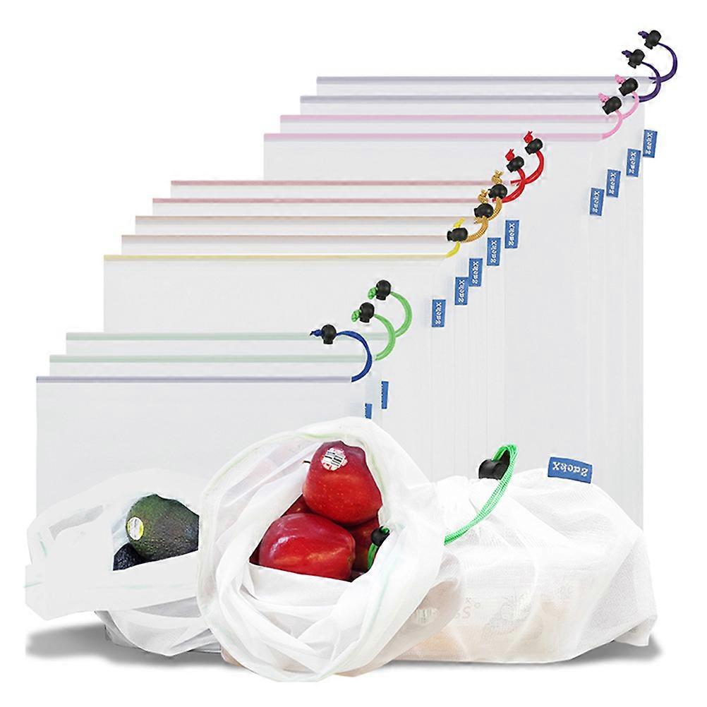 Multipurpose Drawstring Closure Mesh Bags for Fruits Vegetables Eco Conscious Users 33x30cm 8Pcs
