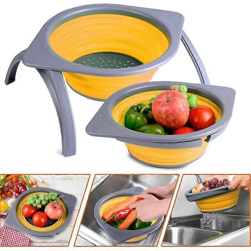 Healthy materials and premium quality: The collapsible sieve is made of food grade silicone, environmentally friendly and odorless. Safe and convenient for cooking, a good helper for your kitchen. Versatile and easy to use: You can use it in or over a sink, collapsible colander or washbasin. Put it on a counter or table as a storage basket. This round, sliding colander is used to drain most foods such as spaghetti, pasta, potatoes, broccoli, green beans, carrots, spinach and other vegetables. Rinse your lettuce leaves, fruits and fresh vegetables. Space saving: The foldable sieve does not take up much space in the cupboard or kitchen cupboard. The best choice if you have a small kitchen. Easy to open and folds flat for convenient, space-saving storage. When folded, it saves more than 70% storage space. Easy to wear when you are outdoors or hiking/picnic and so on. Foldable and durable: The expandable body design can be folded from 13.5cm to 3.5cm in height with one press, so that it can be easily stored in any kitchen drawer, cabinet or drying tray without taking up too much space. Its compact size makes it perfect for a camping trip, picnic or caravan. User-friendly design with soft handles for easy lifting/carrying and can be worn on the hip for comfort. Product description Color: yellow Foldable sieve, storage basket for fruits, vegetables, space-saving foldable net with sturdy supports, tableware for cooking, outdoors, travel, camping. The collapsible strainer will exceed your expectations - a lovely gift for kitchen and home, housewarming parties, new couples, avid chefs, Mother's Day, wedding registries and more. Or treat yourself to the ultimate kitchen strainer that makes food preparation easier. Foldable sieve. Features: 1. Space-saving food strainers are collapsible so they don't take up much space in your kitchen cabinets. This innovative, lightweight design is easy to store and transport for compact storage. 2. The multifunctional storage basket and container is perfect for home, outdoor use like camping, barbecue and camping. Ideal for dishes/fruits/vegetables/meat/seafood/or as a utensil drainer. 3. Safety material, very durable, odor resistant, not easily deformed, dish sink for easy cleaning, so you can use it without worry. 4. Easy to use, designed with a carrying handle, easy to put in and take out of the sink; a non-slip and durable leg is helpful for draining the remaining water. Product information: Material: silicone, foldable sieve Type: Cookware parts. Sizes: 24cm x 29cm x 9.3cm (large). 20cm x 24.5cm x 8.3cm (small). Notes: Due to manual measurement, there may be a deviation of 1-2 cm. Due to different monitors, the color may be slightly different. Scope of delivery: 1 x filter basket.