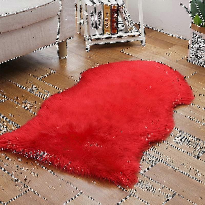 Soft Fluffy Fur Non Slip Faux Sheepskin Rug, Area Rugs For Chair Cover Seat Pad( Size,color : 60x120cm-red