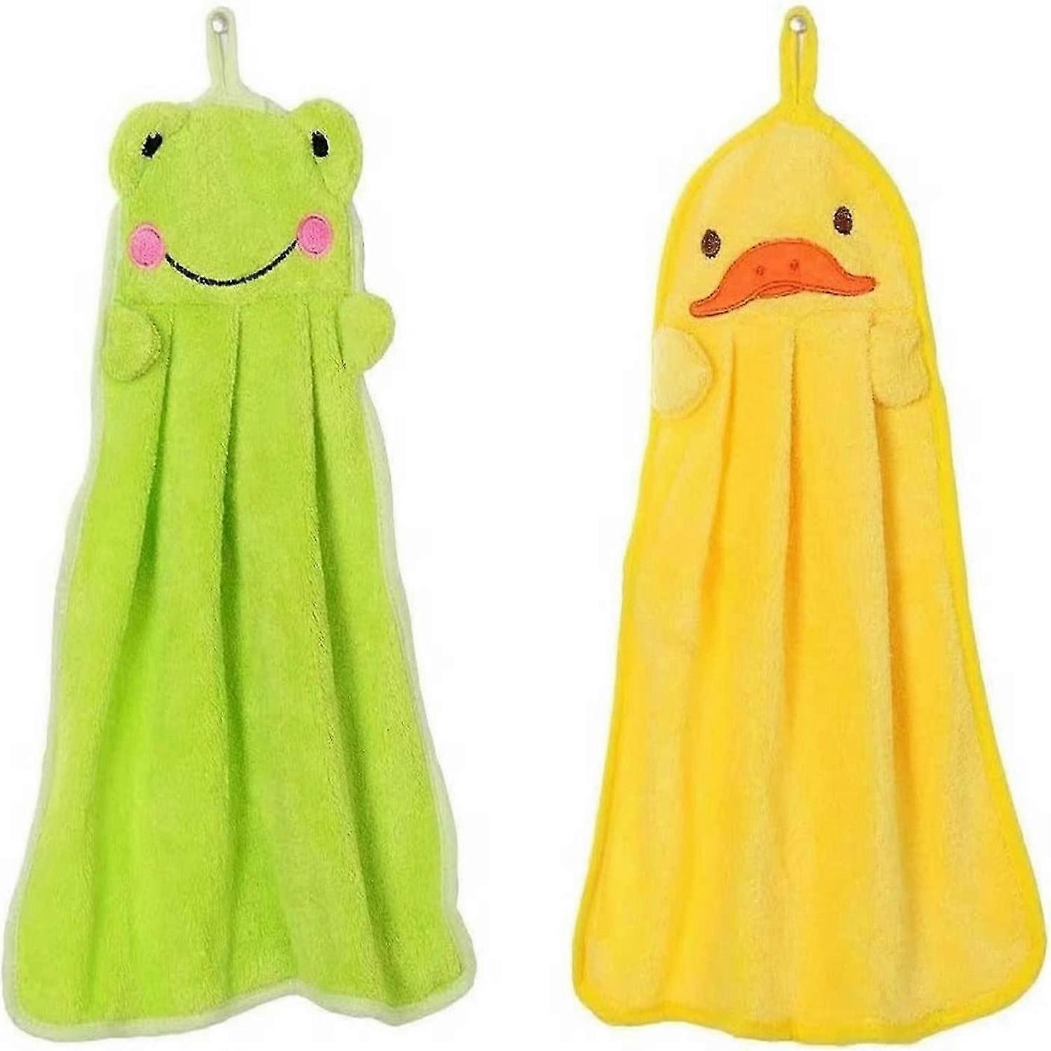 Soft Plush Fabric Cartoon Animal Hanging Wipe Bath Mat 2 Pieces (Green Frog and Yellow Duck)