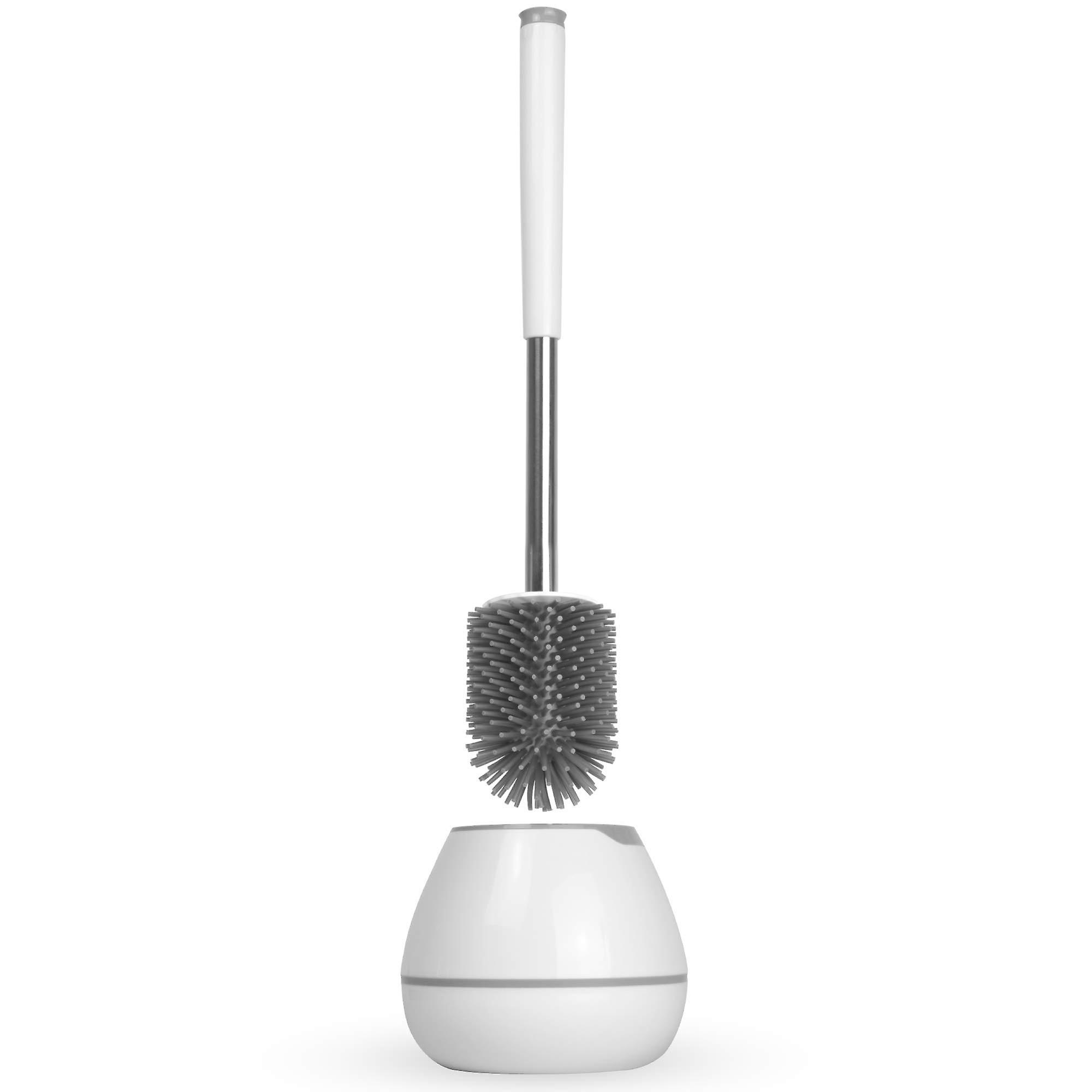 Soft Bristle Toilet Brush,Rubber Head Toilet Cleaner,Plastic Holder Included,Sturdy & Easy Clean Head,Non-Scratch Durable Bristles