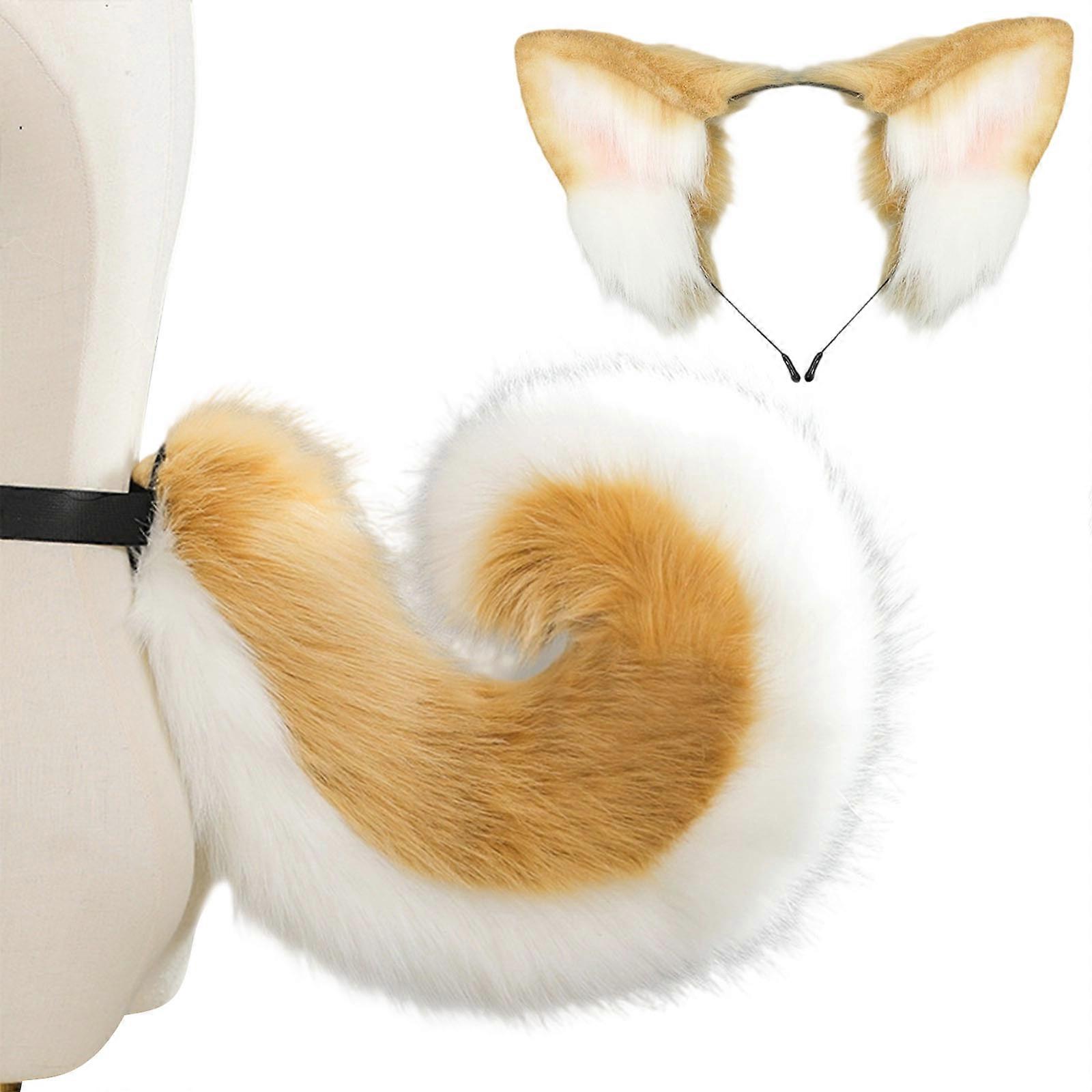 Shiba Inu Dog Costume Accessory Dog Ears Headband Tail Plush Animal Cosplay Outfit for Kid Adult Christmas Role Playing Camel