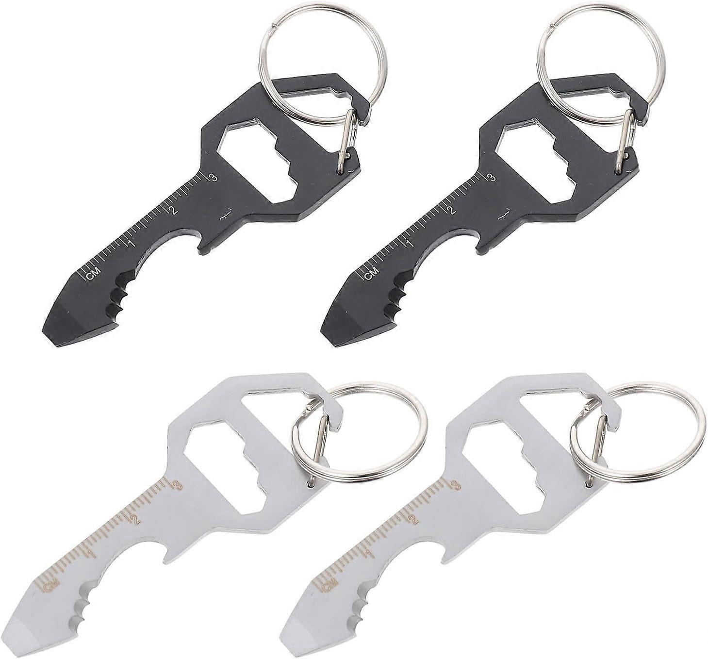 Bottle Opener Keychain Bottle Opener Tin Bottle Opener Manual Can Opener Keychain Beer Bottle (Silver Black) (4pcs)