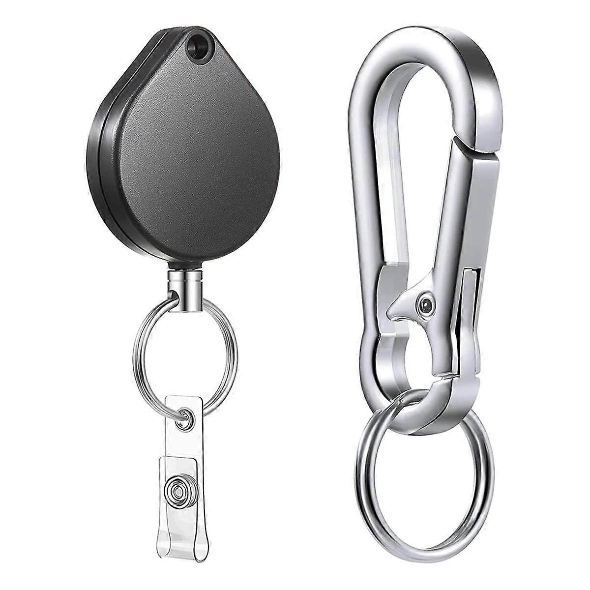 Retractable Keychain Badge Holder Heavy Duty Badge Reel Strong Casing Metal Coiled Steel Wire Rope Carabiner