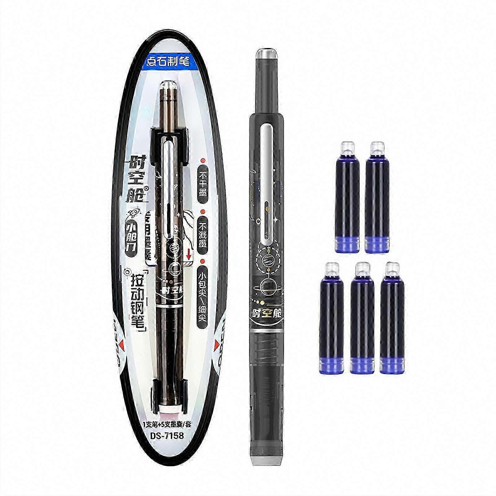Retractable Fountain Pen, 0.38mm Fine Tip Calligraphy Pen with 5 Refillable Ink Cartridges for Smooth Writing - Black