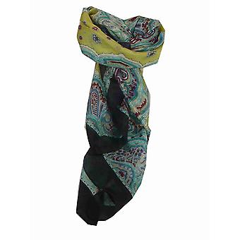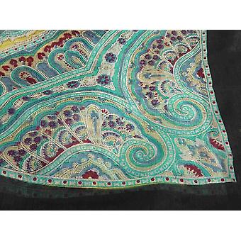 桑絹の伝統的な正方形スカーフ表しブラック ・ パシュミナ ・ シルクでティール