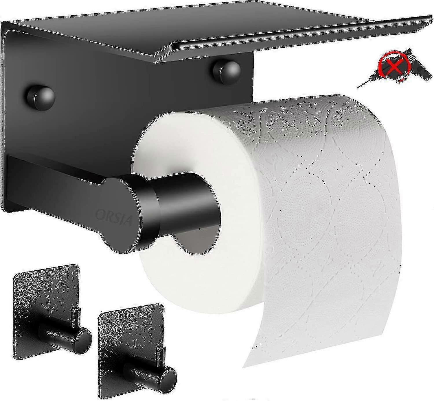 Toilet Paper Holder Without Drilling With Shelf, Self-adhesive Toilet Paper