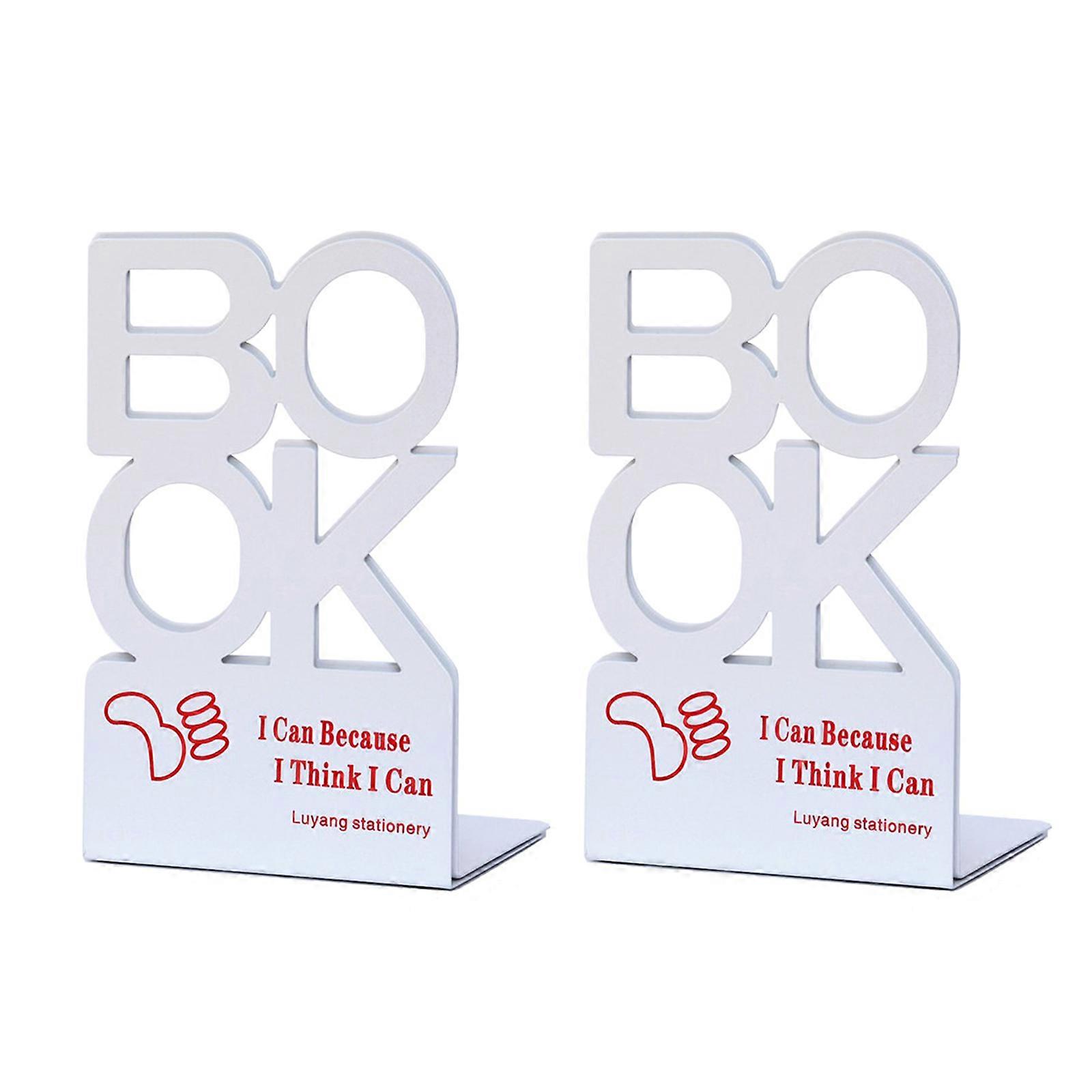 2Pcs Hollow Book Ends for Shelves Heavy Duty Metal Bookends Hollowed Letter Bookends Desk Book Ends Book Stopper White